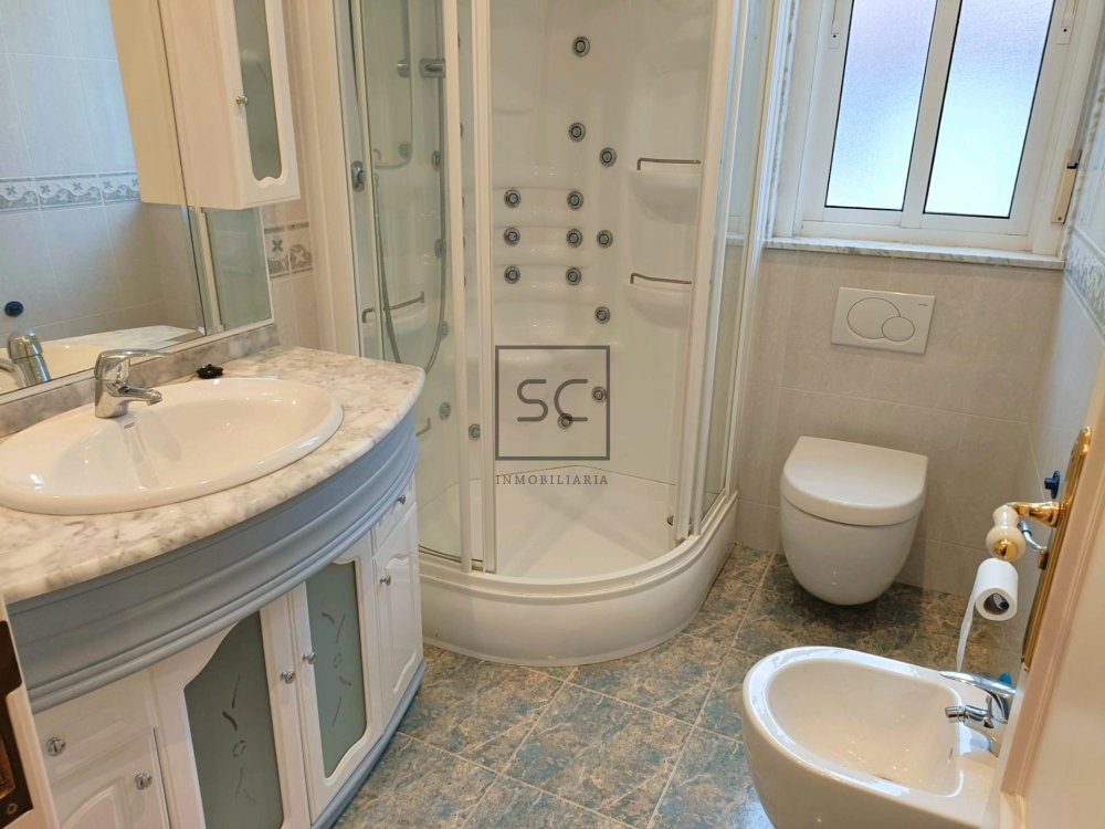 Planta primera: Desde ese hall en la planta baja tendremos acceso a las escaleras que nos llevarán a su zona de descanso en el primer piso donde veremos un baño con plato de ducha y su columna de hidromasaje, cuatro habitaciones dobles llenas de luz natural, una de ellas con armario empotrado y baño propio con plato de ducha y bañera de hidromasaje.