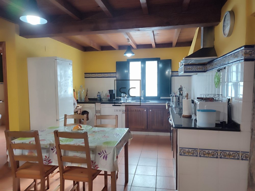En la PLANTA BAJA tenemos una fabulosa cocina americana de corte rústico completamente equipada que da paso a un majestuoso salón y el primer cuarto de baño de la vivienda.