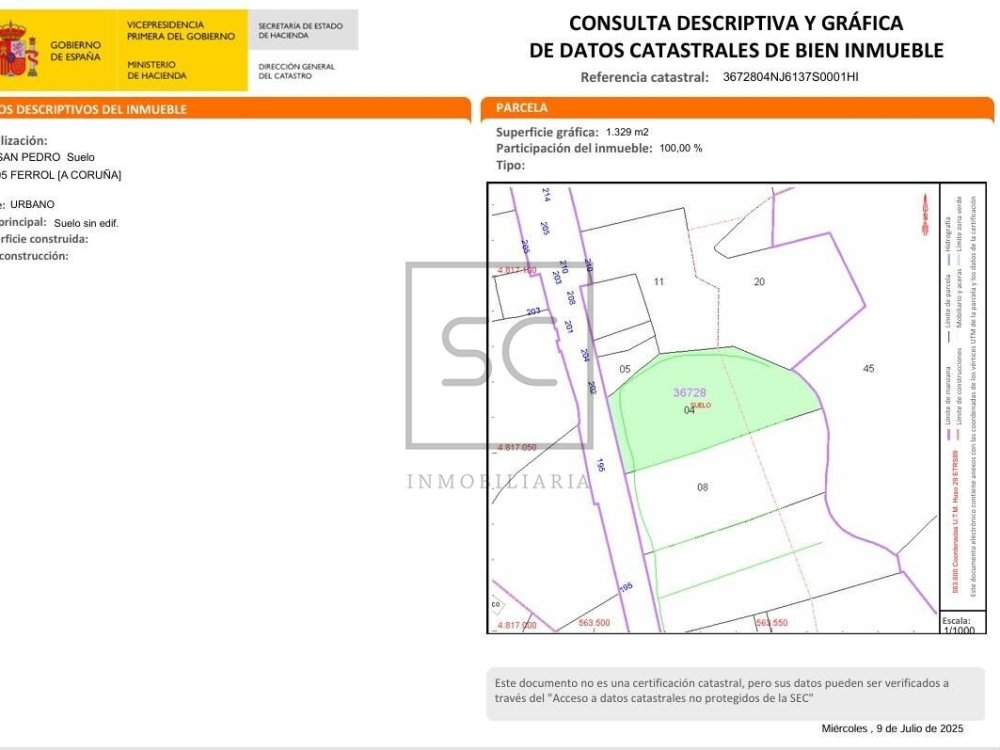La ubicación estratégica del terreno garantiza fácil acceso a servicios esenciales y transporte público gracias a su proximidad al parque O Boial y a la autopista AP9. Este es el lugar idóneo donde podrás construir no solo una casa sino también un estilo de vida sereno, disfrutando del sol durante todo el día mientras estás conectado con las comodidades que ofrece la ciudad de Ferrol, muy cerca también.