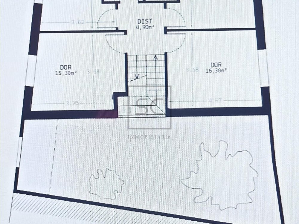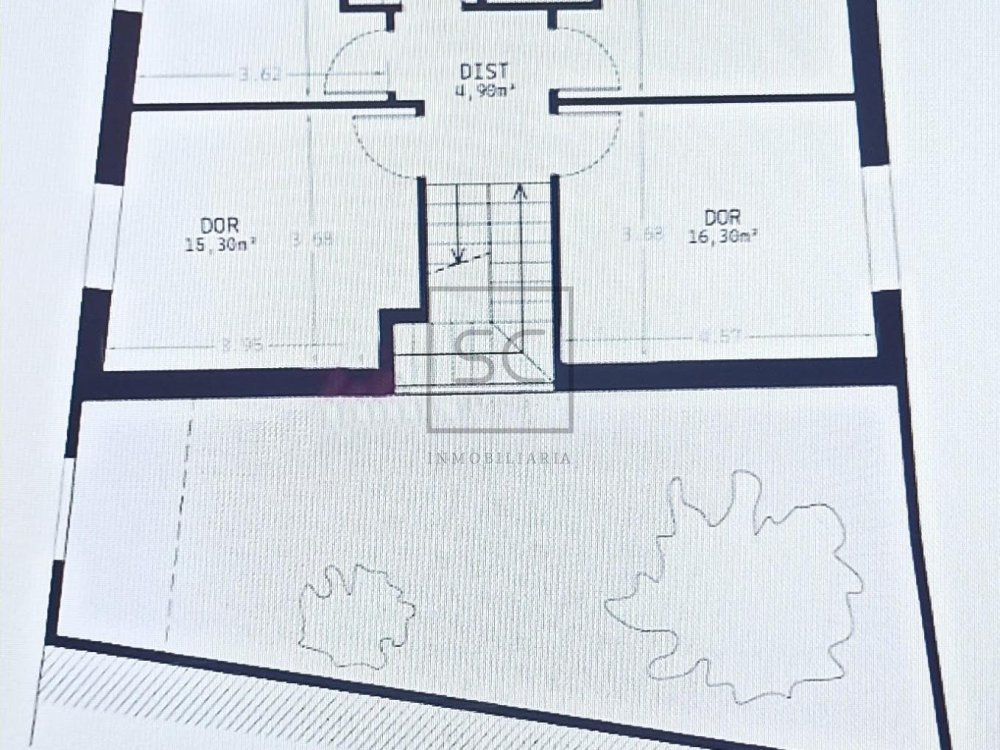 Planta primera: zona de descanso, con proyecto para 4 dormitorios y 2 baños.