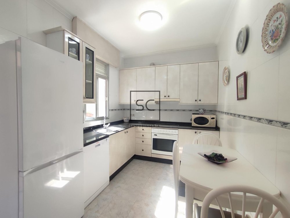En el interior podemos encontrar un elegante salón presidido por un panel de madera que marca la separación con un bonito hall recibidor. A mayores contamos con tres dormitorios todos exteriores que a través de un pasillo nos conducen con una cocina completamente equipada de corte moderno y un cuarto de baño de amplio volumen.