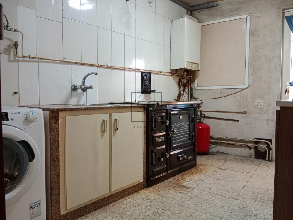Vivienda de 220m² repartidos en 2 alturas. Su puerta principal nos sitúa en el salón de 21m² que posee una estufa de leña, una habitación de 16m², seguimos por el pasillo en forma de L, donde dispone de otra entrada por la parte trasera, pero antes de salir, seguimos por la cocina-office de 12m², una pequeña habitación habilitada de despensa, un baño completo con plato de ducha y otra cocina que posee una cocina de leña y dispone también de una puerta con acceso al exterior.