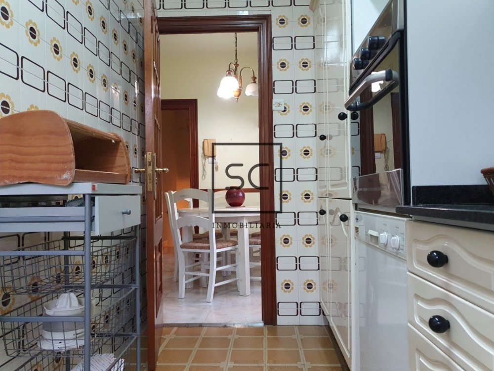 Tras subir por unas escaleras en forma de "Y" a nuestra derecha se sitúan, la zona de comedor, la cocina amueblada, la sala, una estancia de 11m² con chimenea, y el baño de la casa con ducha.