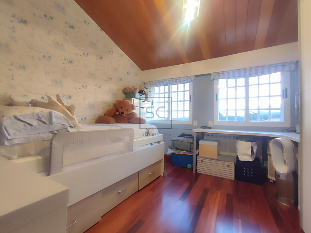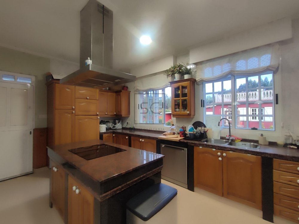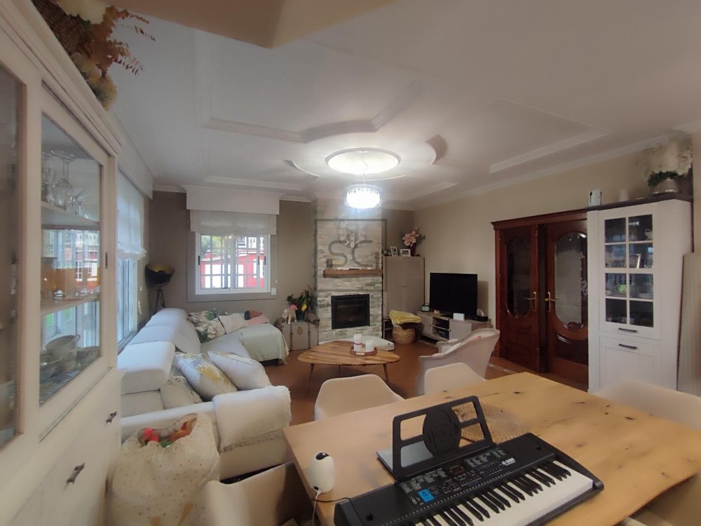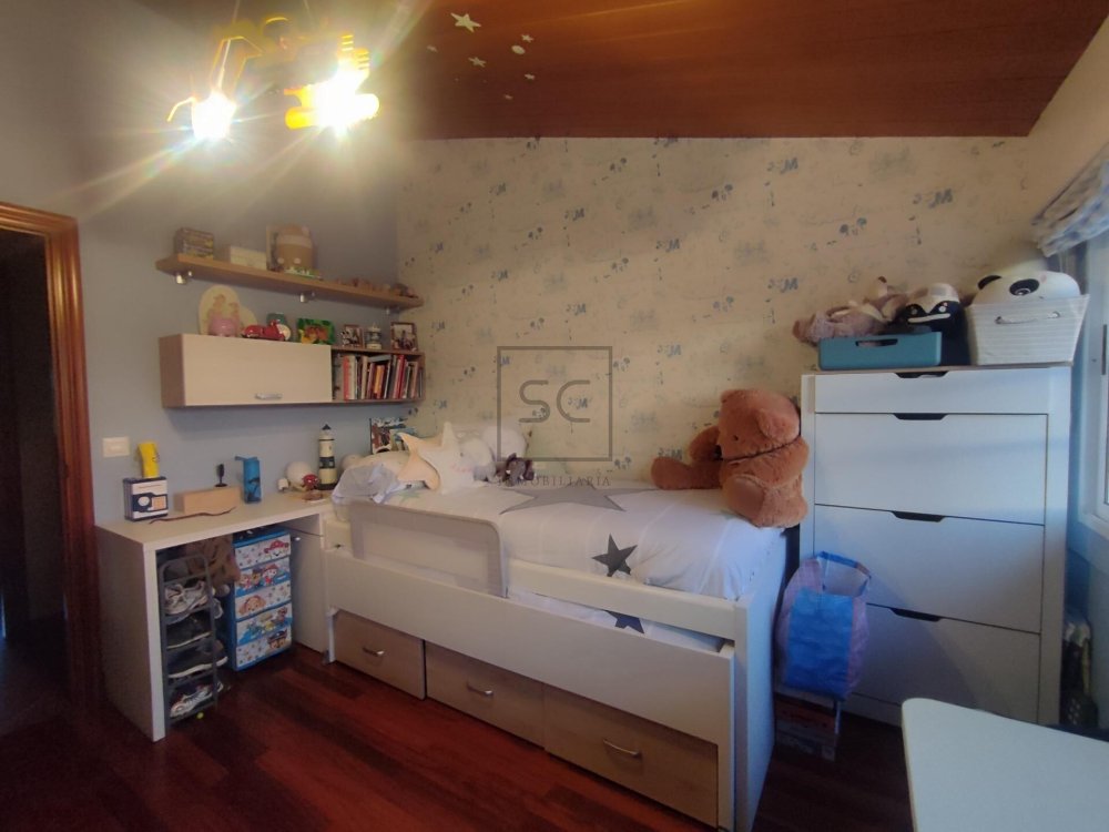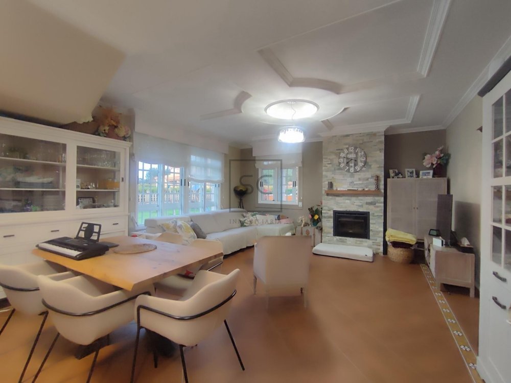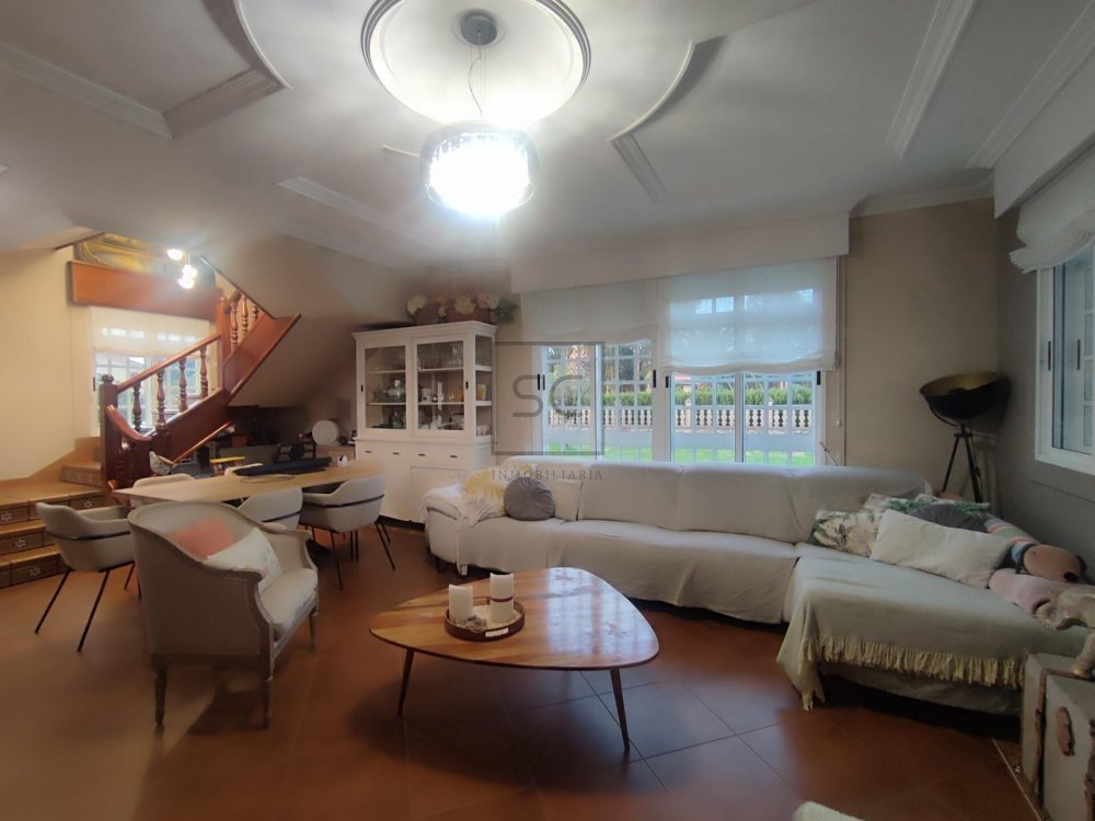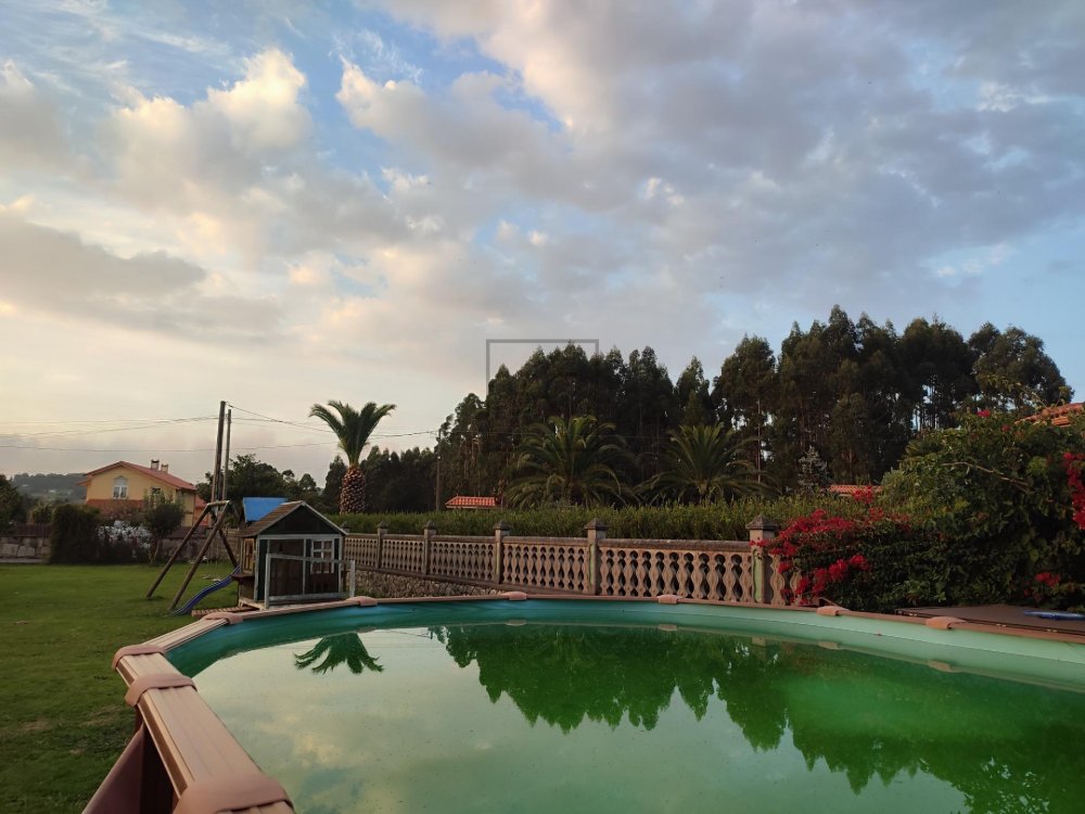 Dentro de su finca cerrada con piedra, veremos un espacio exterior de un volumen de 1322 mts totales, donde contamos con una zona ajardinada que alberga áreas que invitan al disfrute de pequeños y mayores. Destacamos por tanto, su fabulosa piscina tubular, zona de juegos y fantástica barbacoa. A mayores tenemos un garaje con capacidad para un vehículo, y otra construcción donde organizar reuniones familiares o de amigos que, sin dudad, no dejará de sorprendernos por su lareira de corte rústico.